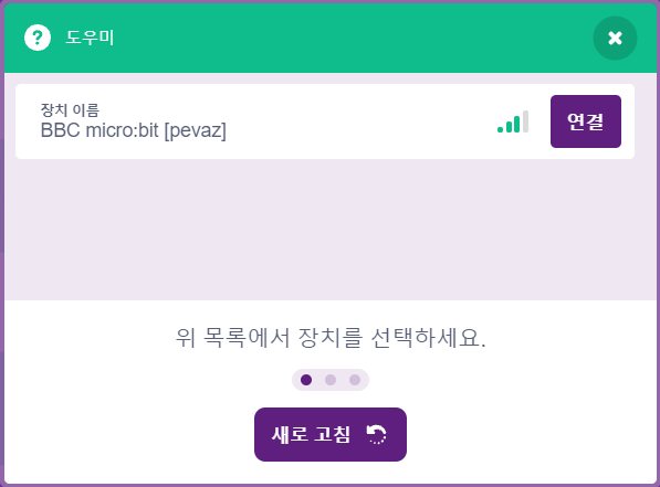 <그림3. 마이크로비트 연결 팝업창>