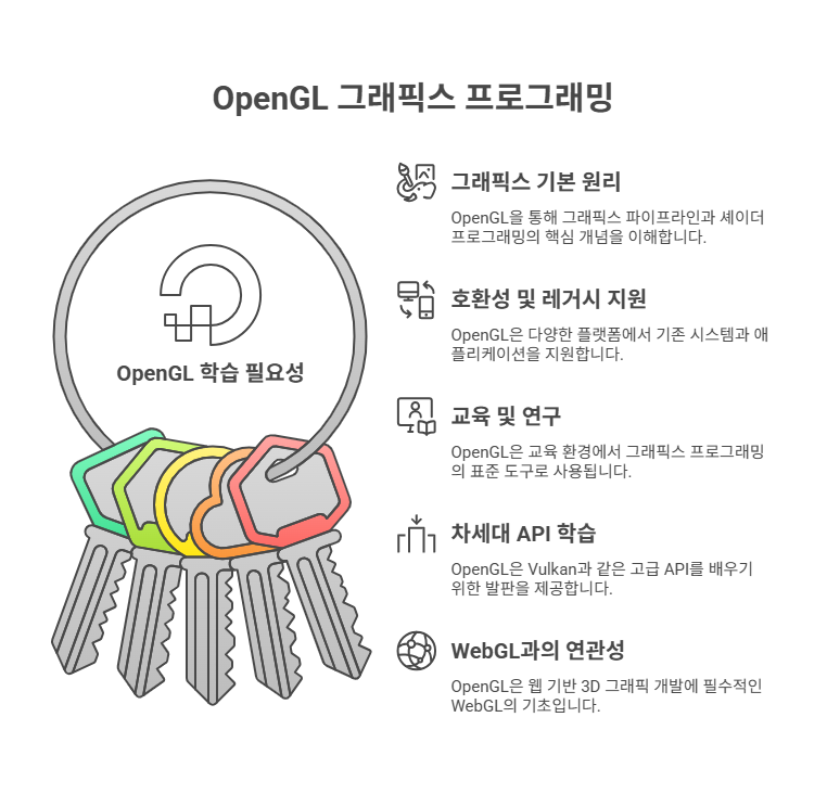 자, 이제 가장 중요한 질문이 남았죠. "최신 기술도 많은데, 굳이 OpenGL을 지금 배워야 할 이유가 있을까요?" 네, 그럼에도 불구하고 OpenGL을 배우는 것은 여러 가지 면에서 큰 의미가 있습니다. 특히 저처럼 그래픽스의 원리가 궁금했던 분들에게는 더욱 그렇죠!